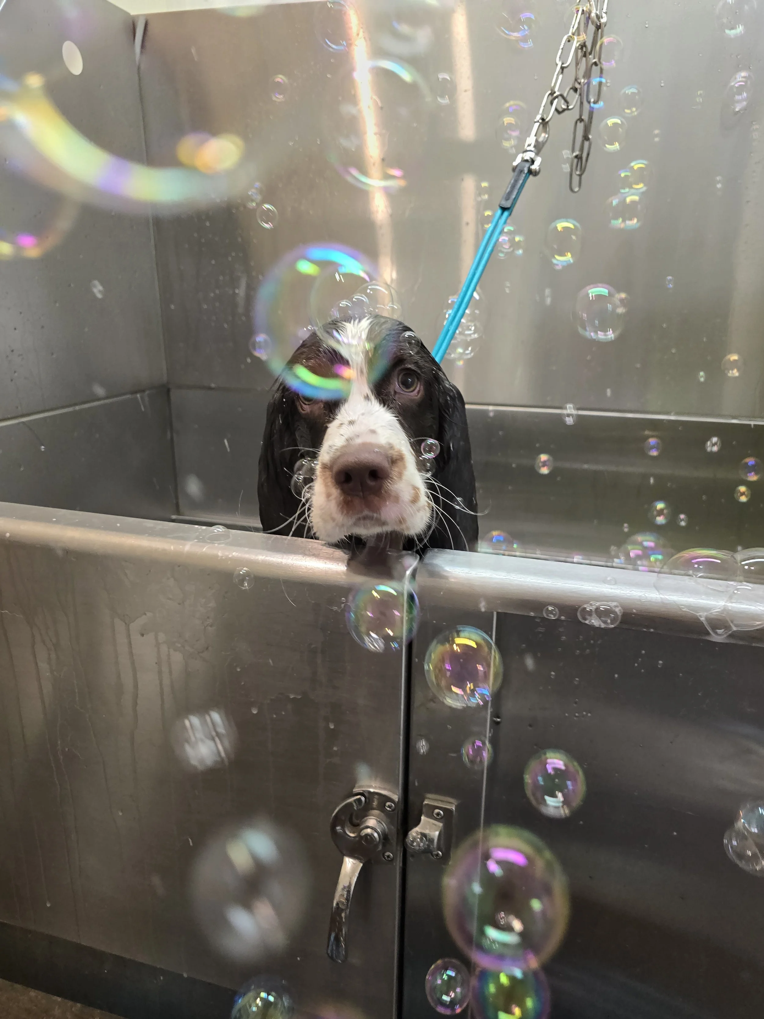 Designed for puppies starting at 8 weeks old through six months, this visit helps your pup build confidence through positive experiences with bathing, brushing, drying, and gentle handling — setting them up for a lifetime of stress-free grooming.